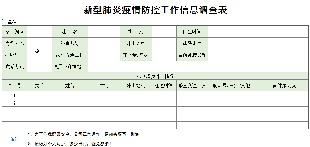 excel模板-新型肺炎疫情防控工作信息调查表