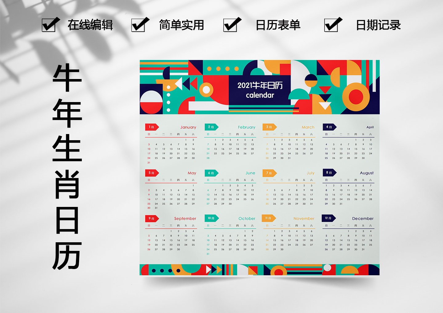 excel模板-朋克风2021牛年日历