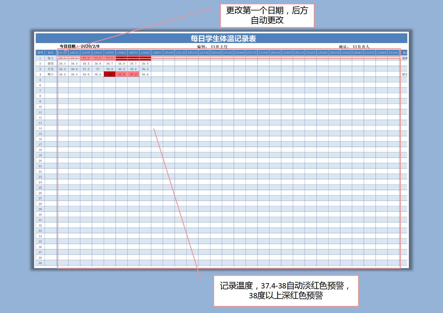 excel模板-每日学生体温记录表