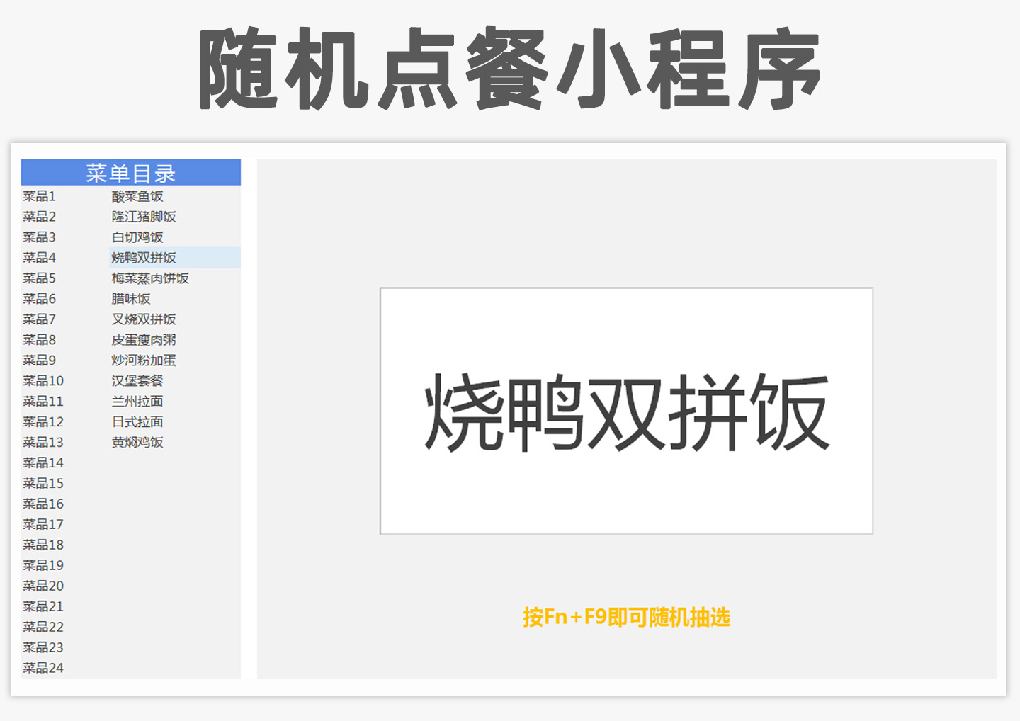 excel模板-随机点餐小程序(自动抽选)