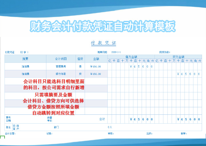 excel模板-付款凭证自动计算模板