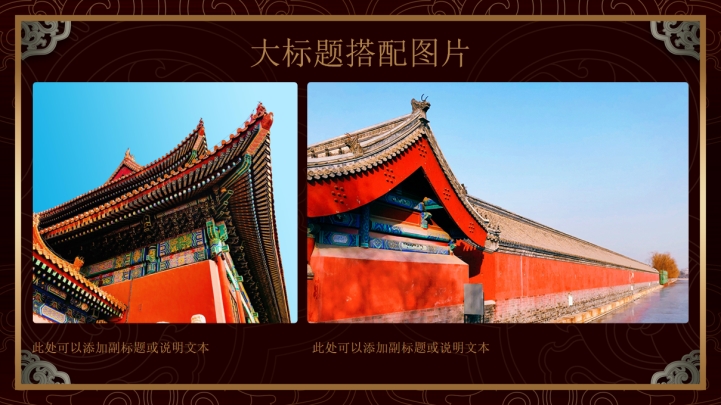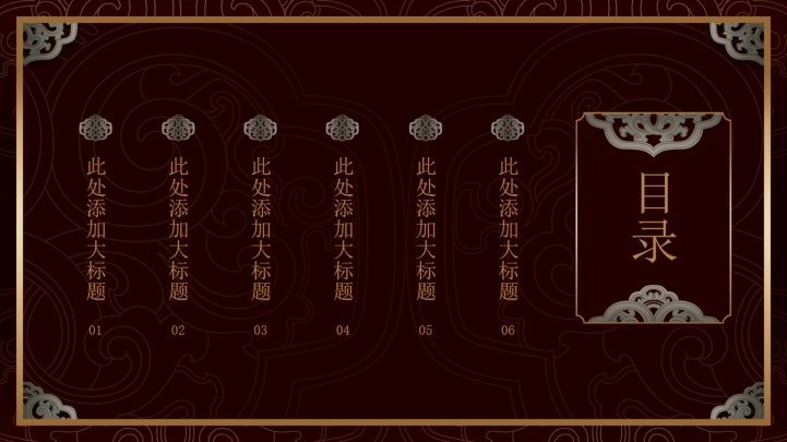 ppt模板-复古卷草纹年中总结模板