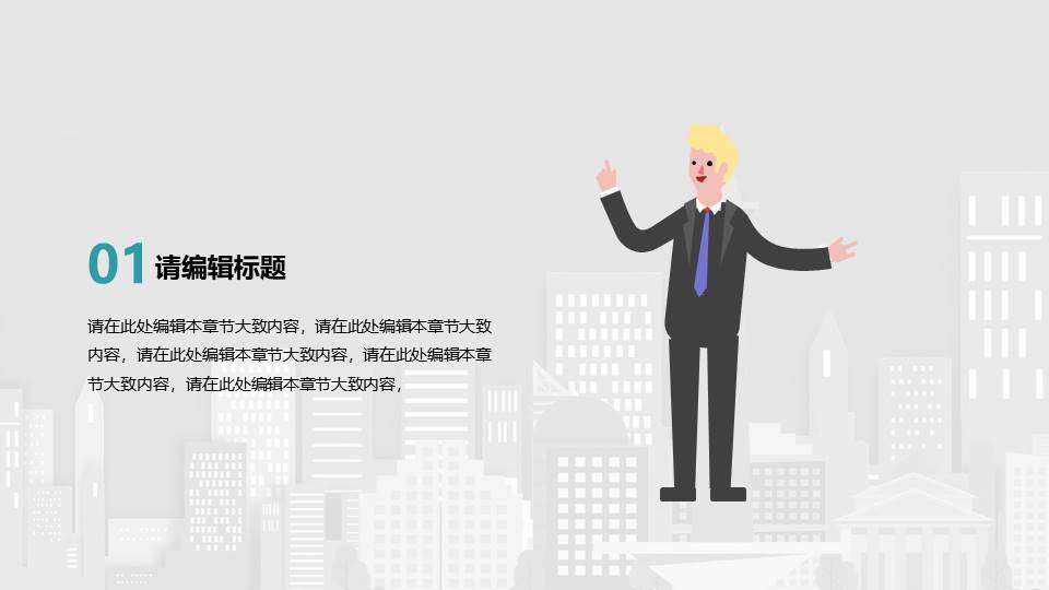 ppt模板-简洁矢量扁平插画风工作汇报PPT