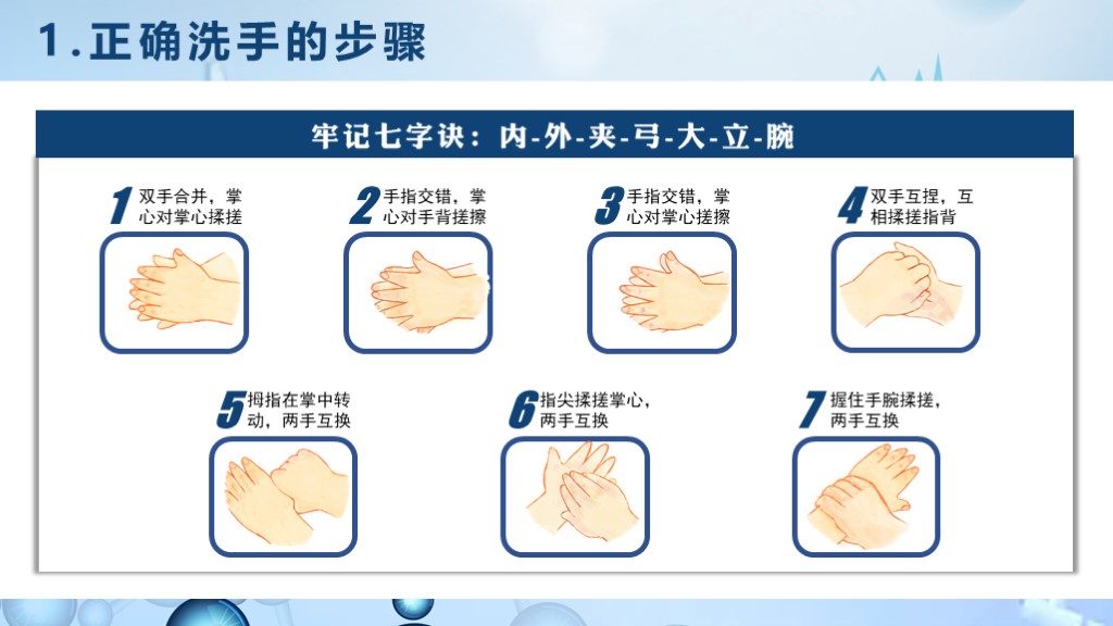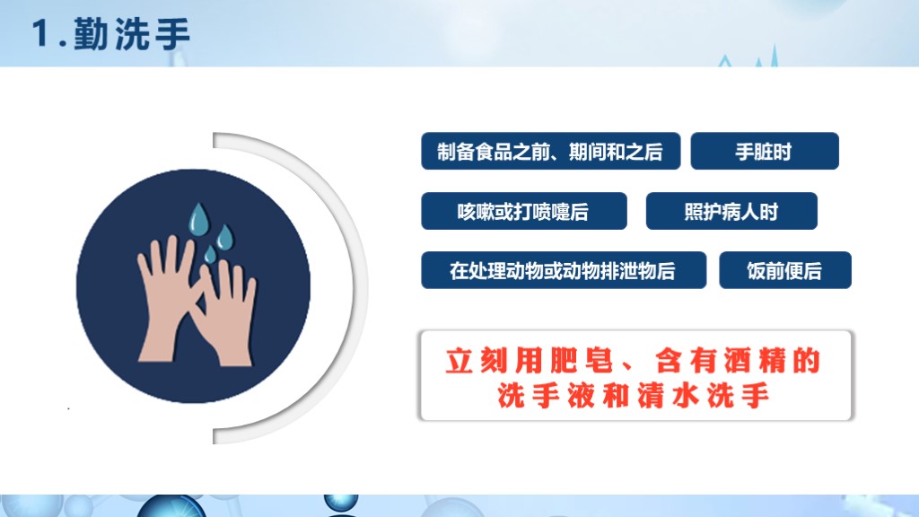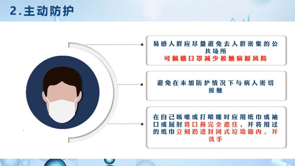 ppt模板-蓝色动态新型冠状病毒防护科普