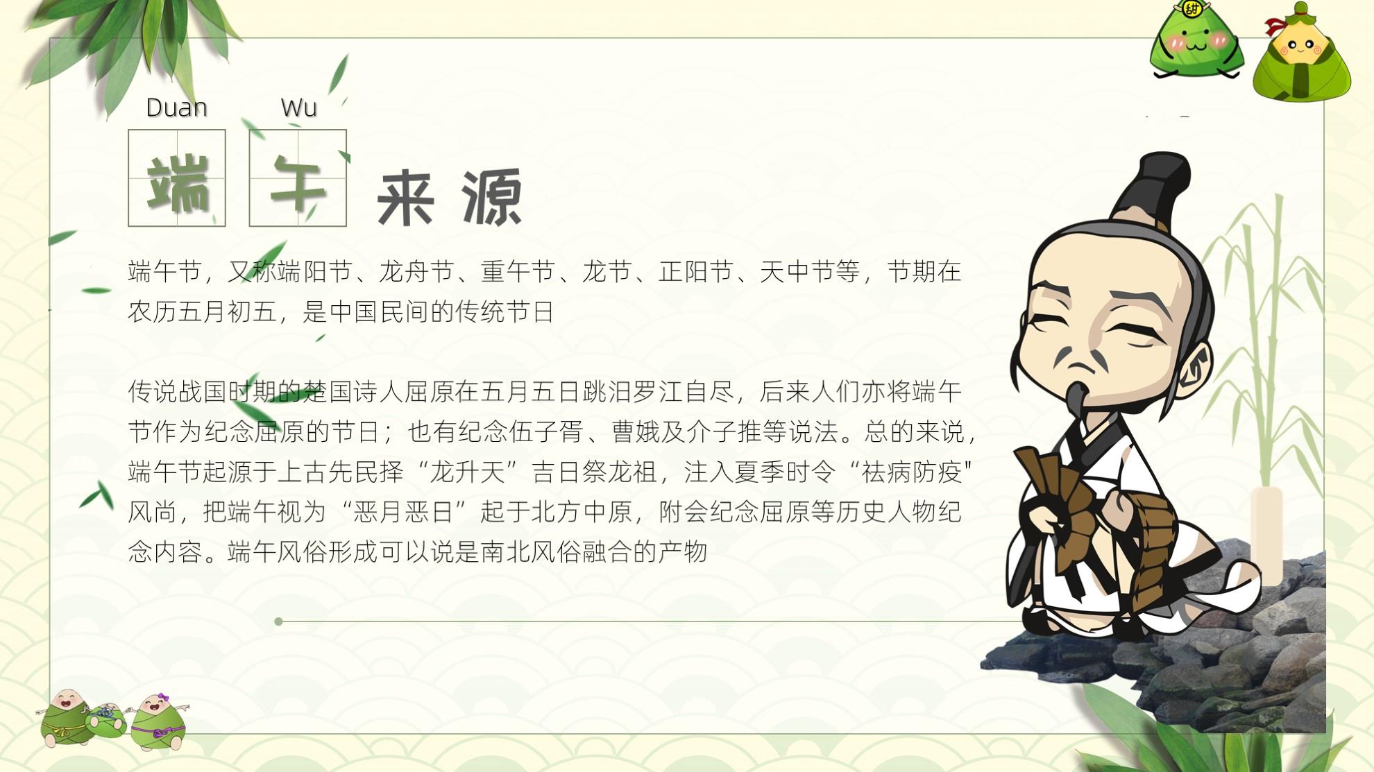 ppt模板-端午介绍卡通模板幼儿教学通用