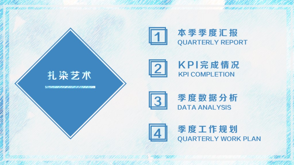 ppt模板-扎染蓝素描简约工作汇报ppt模板