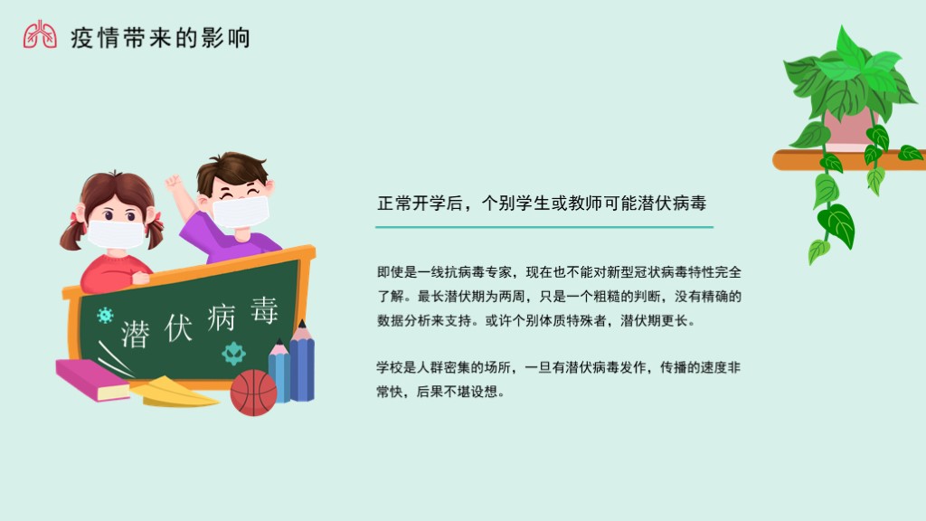 ppt模板-卡通学校疫情防控总结汇报PPT