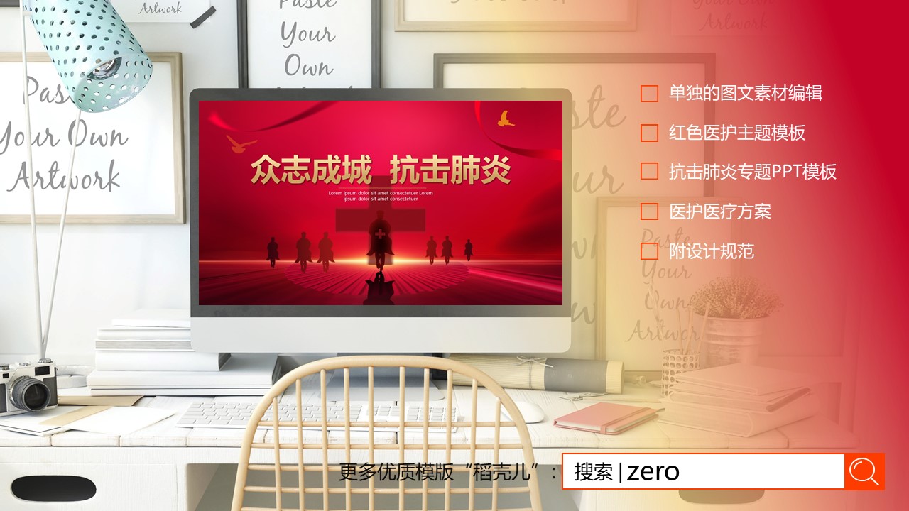 ppt模板-红色众志成城抗击肺炎医疗汇报PP