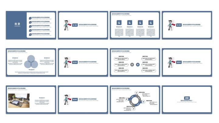 ppt模板-蓝色简洁通用学术毕业答辩模板