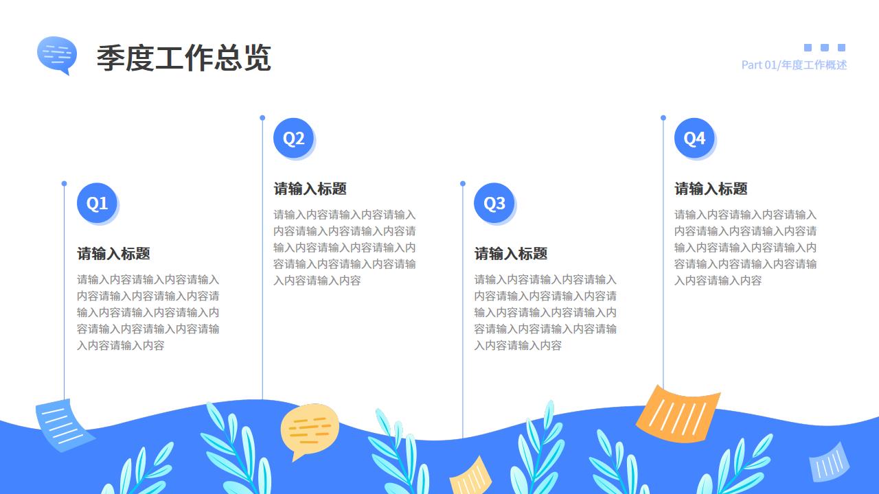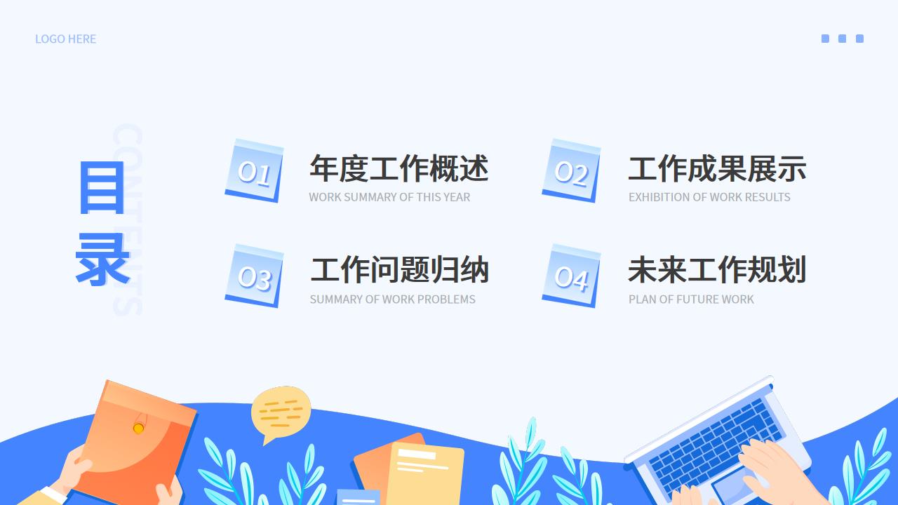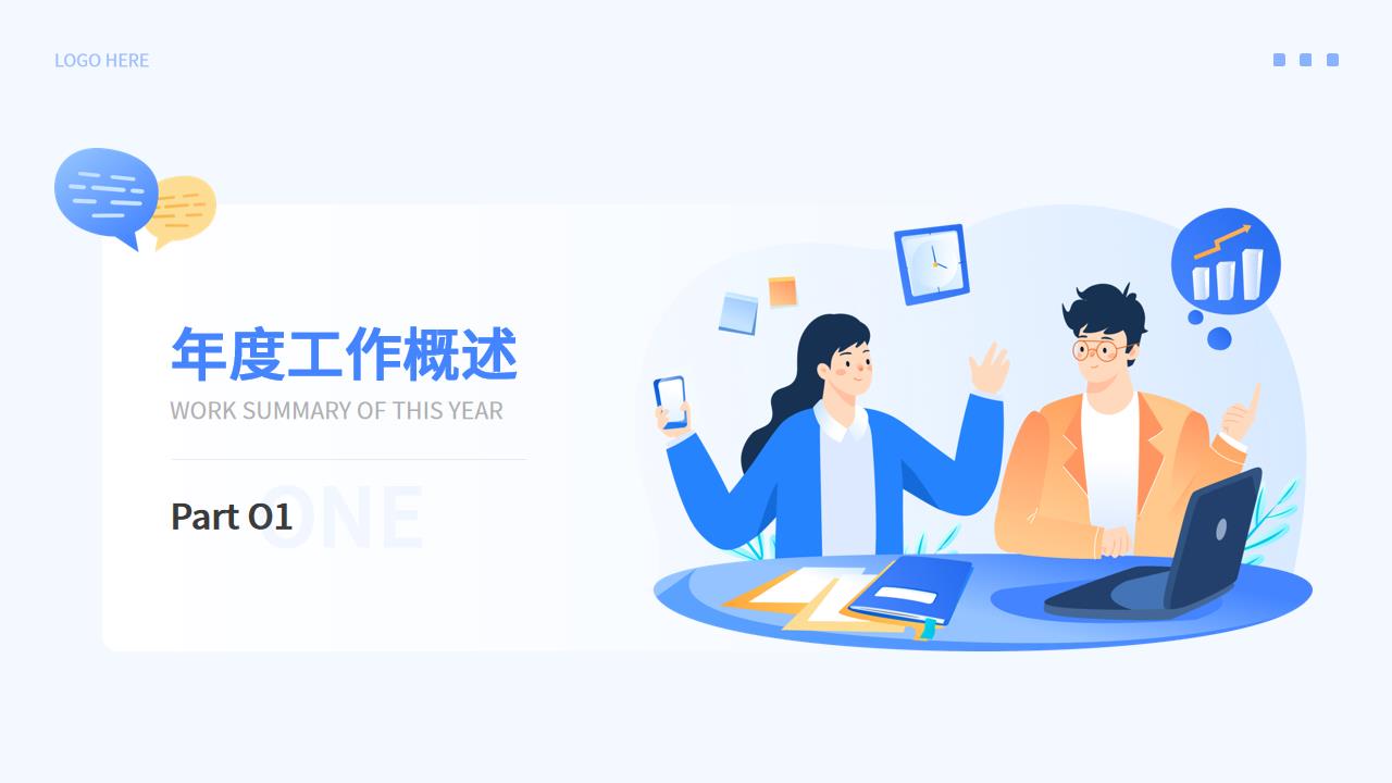 ppt模板-蓝色扁平插画风年终总结PPT模板(动态)