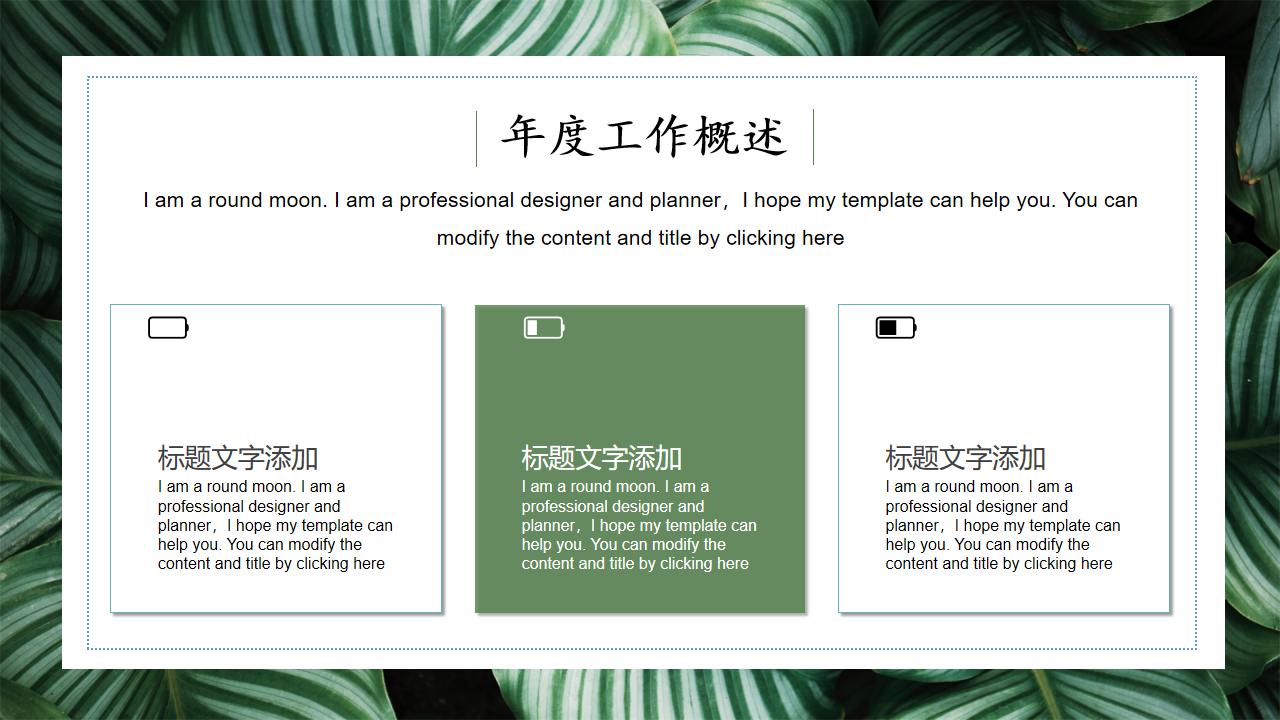 ppt模板-可爱的绿色植物小清新总结计划