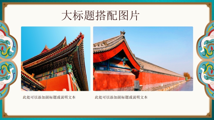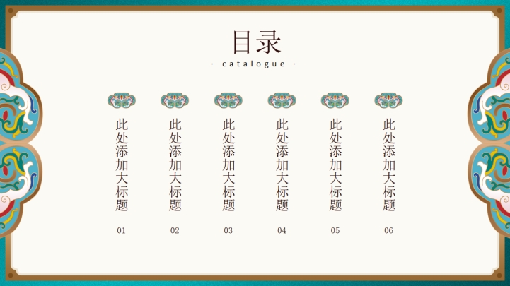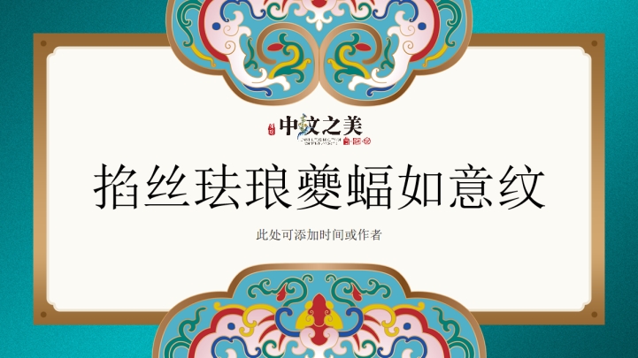 ppt模板-湖蓝珐琅如意纹通用模板