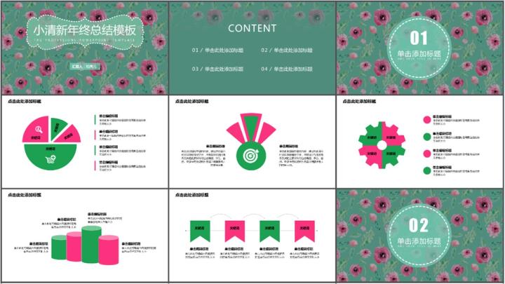 ppt模板-小清新花朵简约风年终总结PPT模板