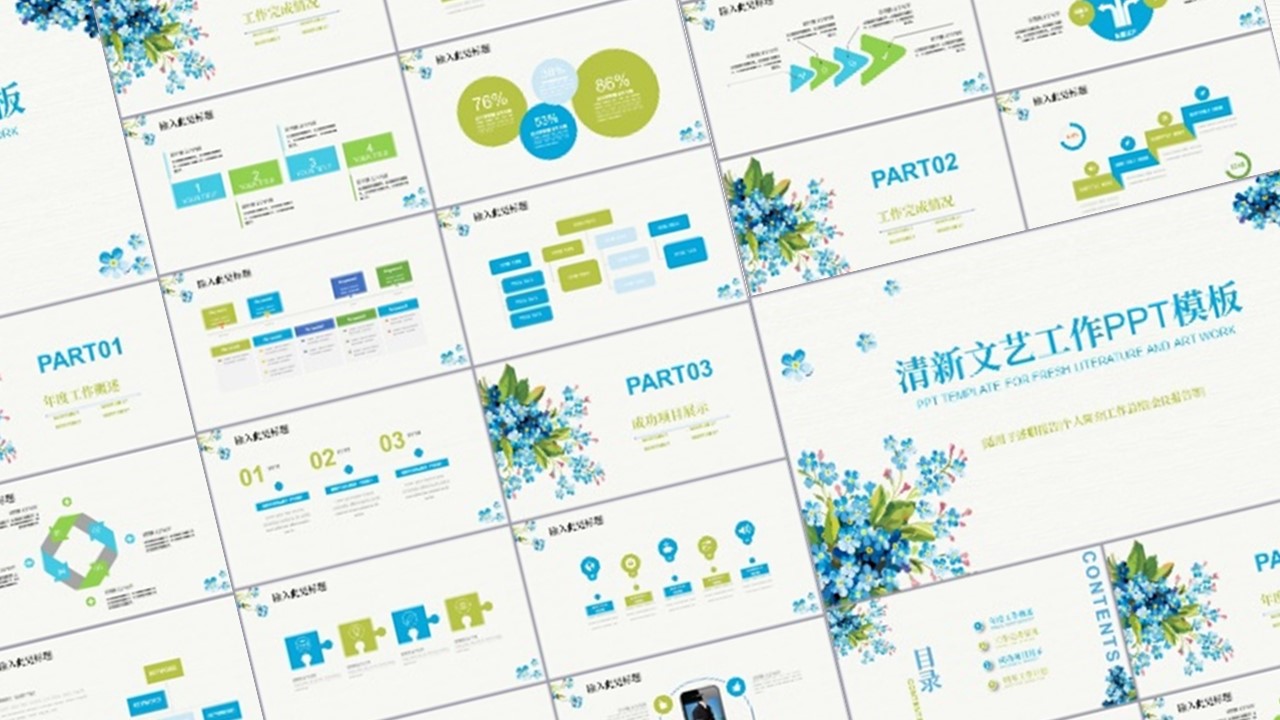 ppt模板-32页动态精美小清新答辩述职通用免费模板