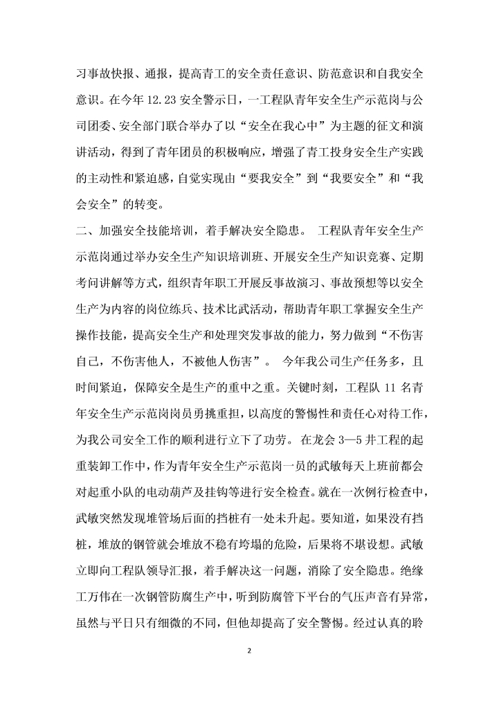 word模板-工程队创安全示范岗情况汇报