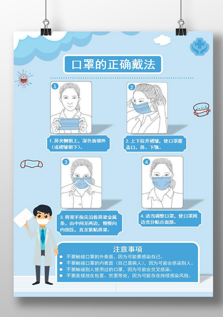 word模板-蓝色卡通疫情防护口罩的正确戴法