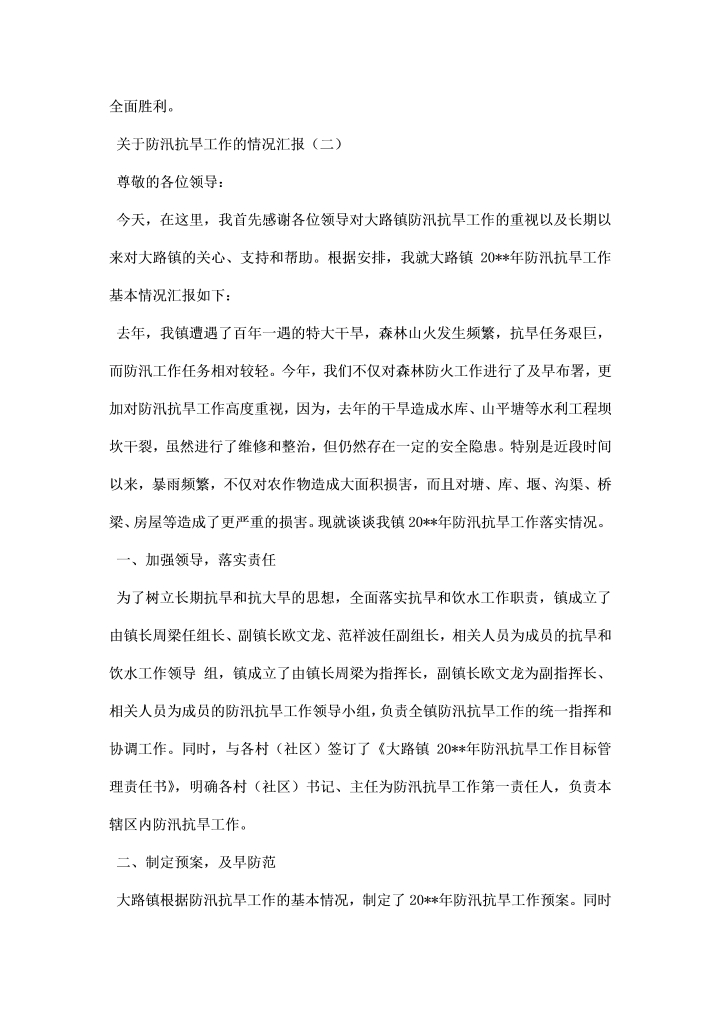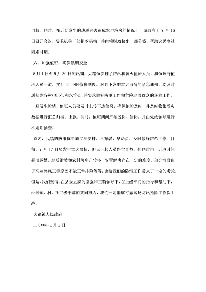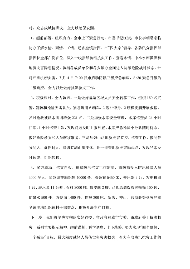 word模板-市人民政府防汛抗灾工作情况汇报