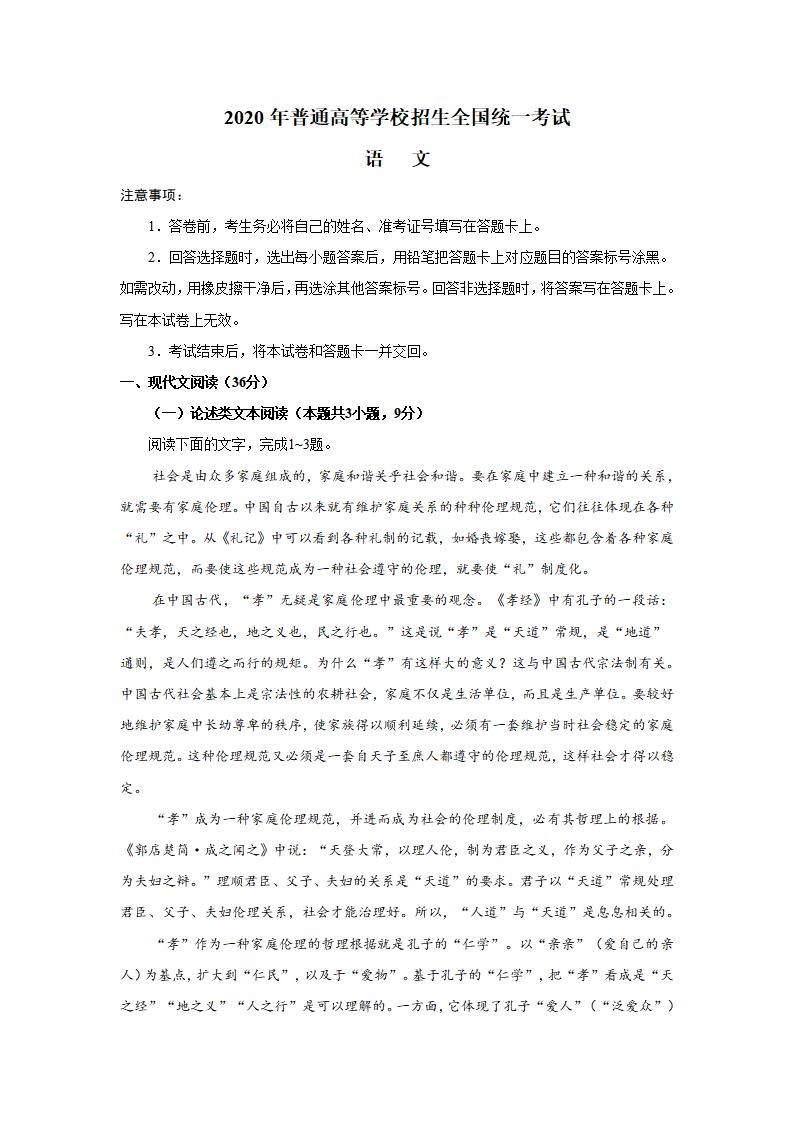 word模板-2020高考全国Ⅰ卷语文真题