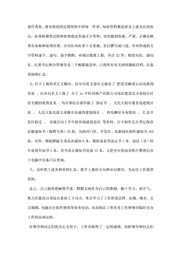 word模板-城管执法局办公室工作人员工作汇报