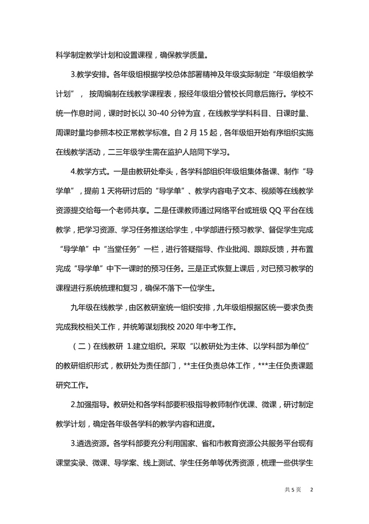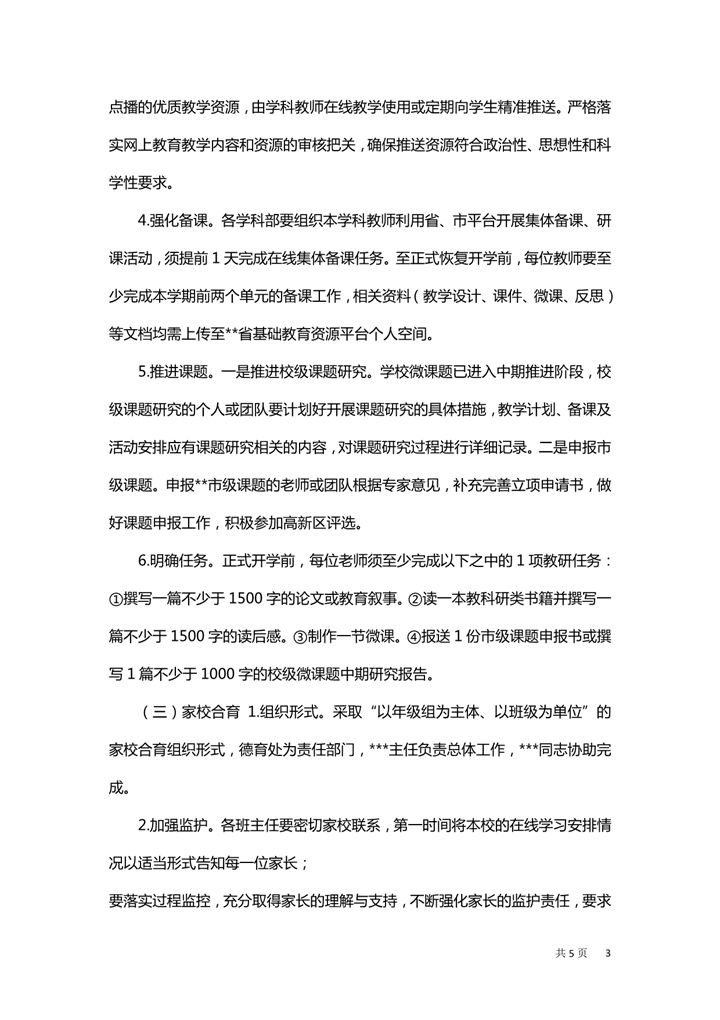 word模板-疫情期间开展在线教学工作方案