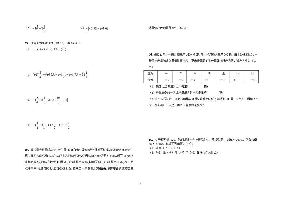 word模板-有理数考题