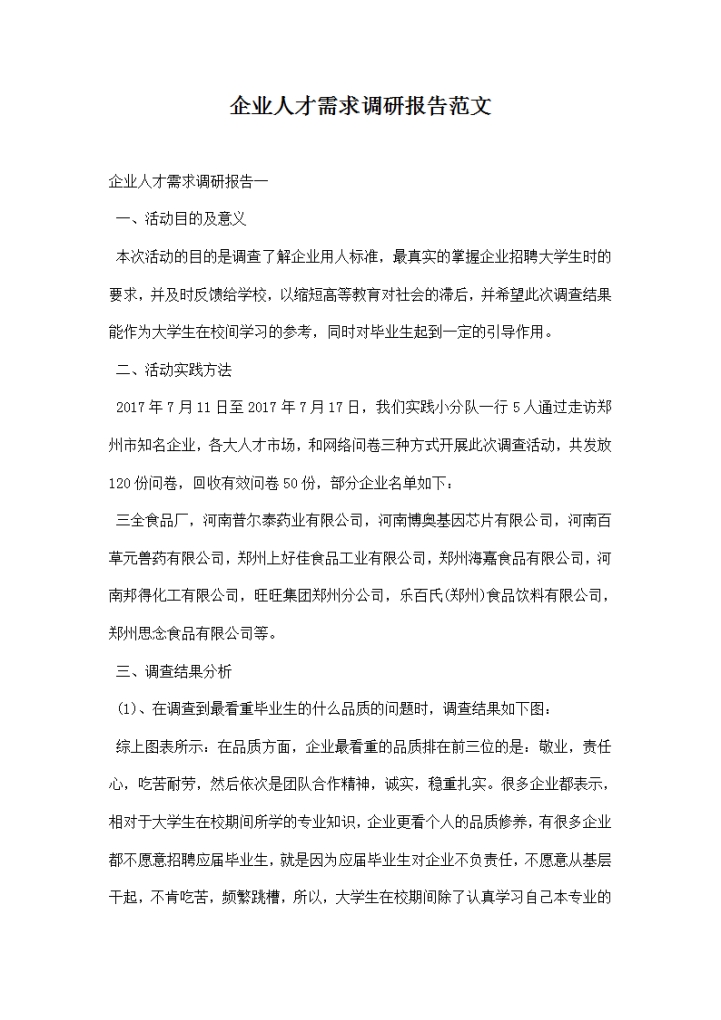 word模板-企业人才需求调研报告范文