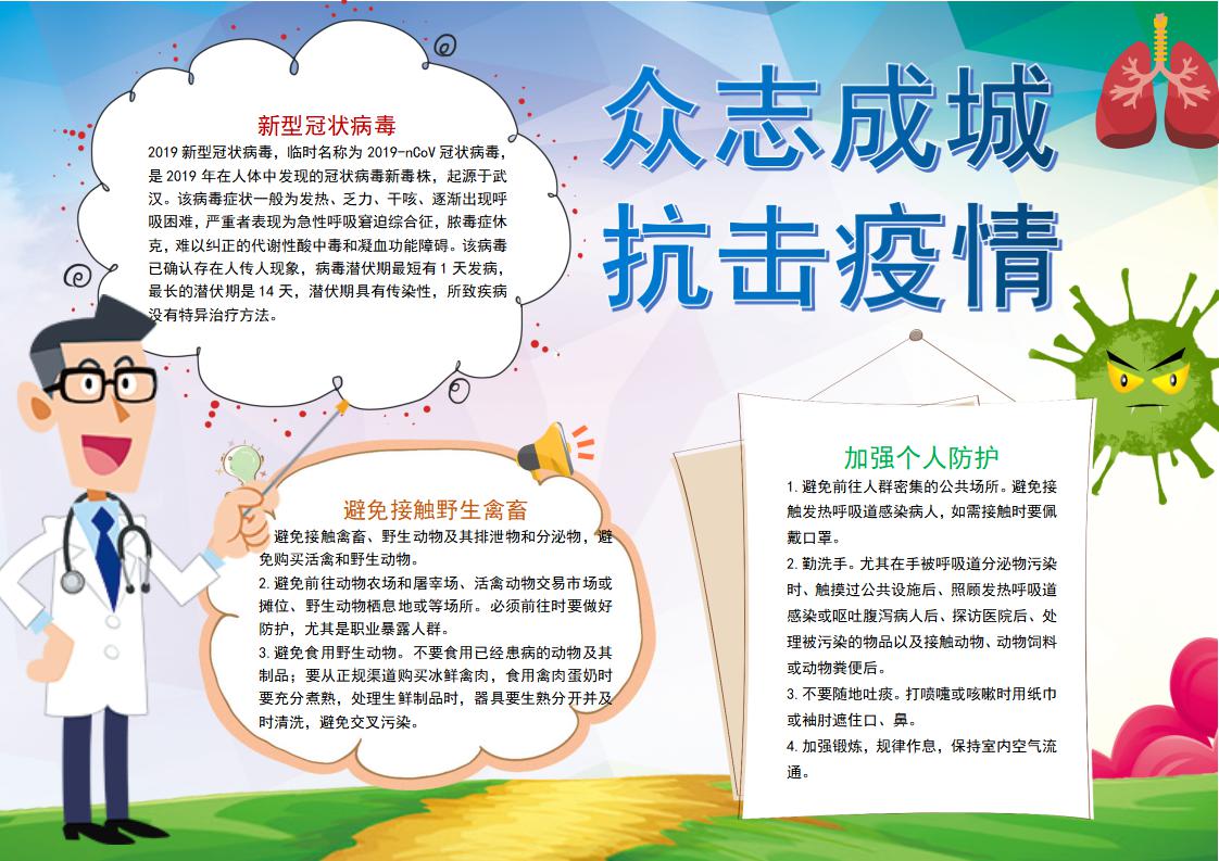 word模板-卡通渐变风众志成城抗击疫情小报