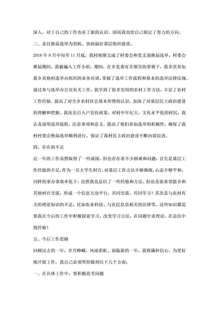word模板-大学生村官关于农村工作的总结