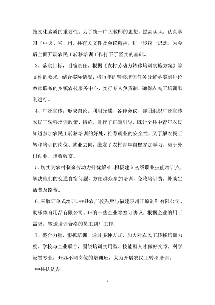 word模板-县扶贫办农民工转移培训情况汇报