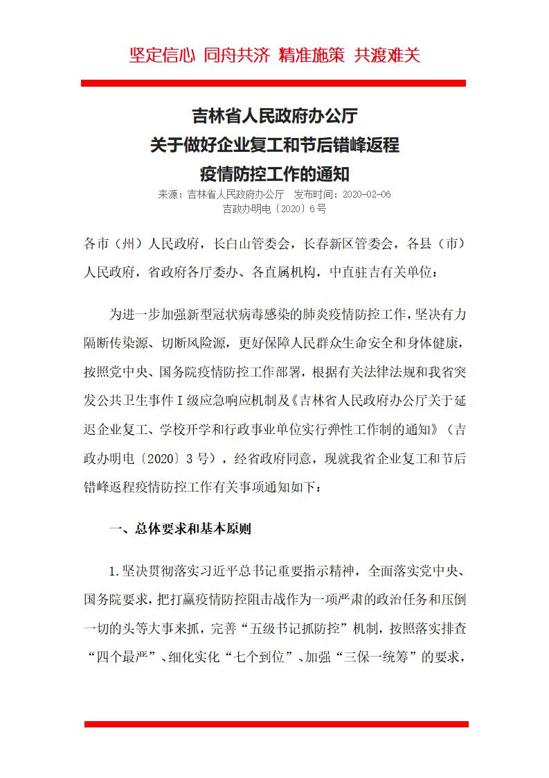word模板-吉林省关于企业复工和防疫的通知