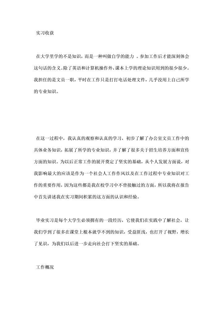 word模板-毕业文员实习总结