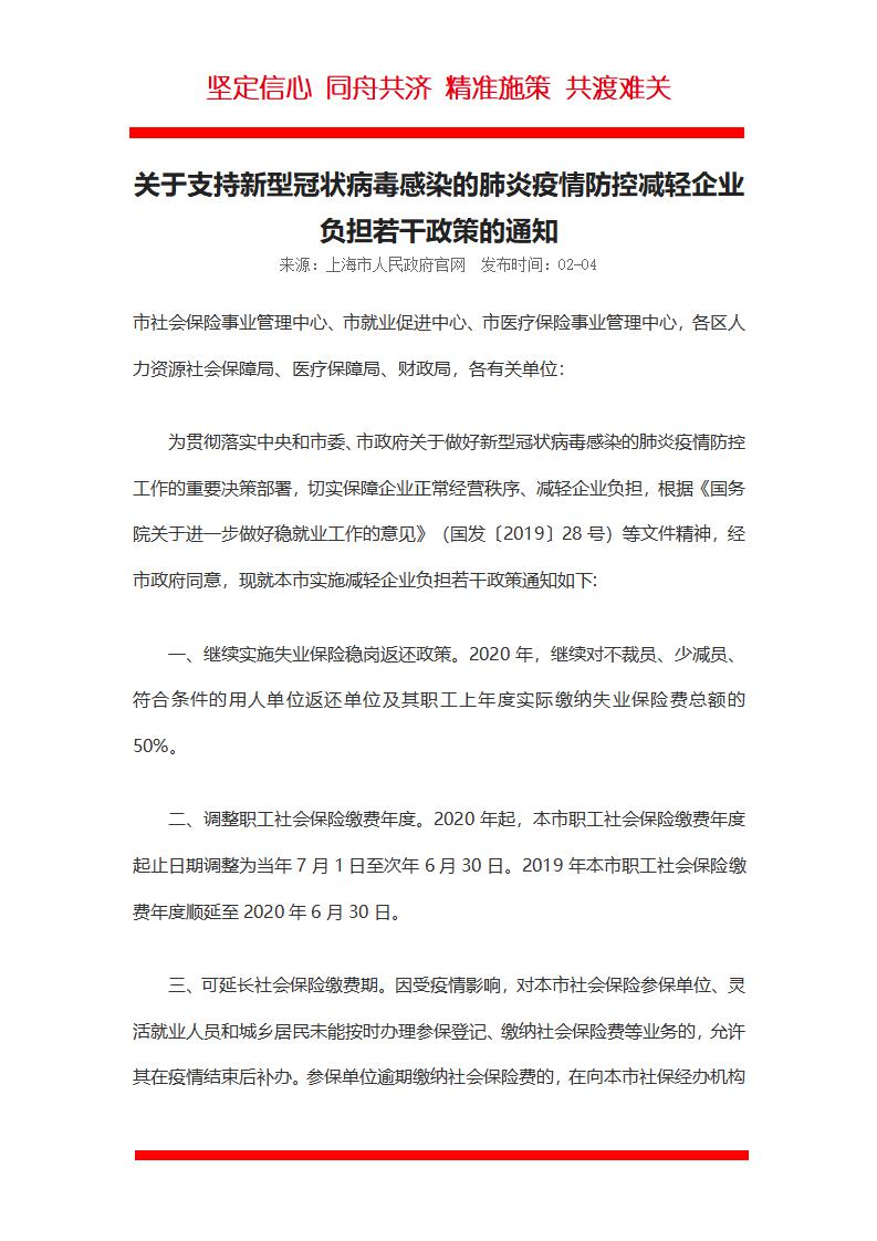 word模板-上海社保局出台企业减负通知