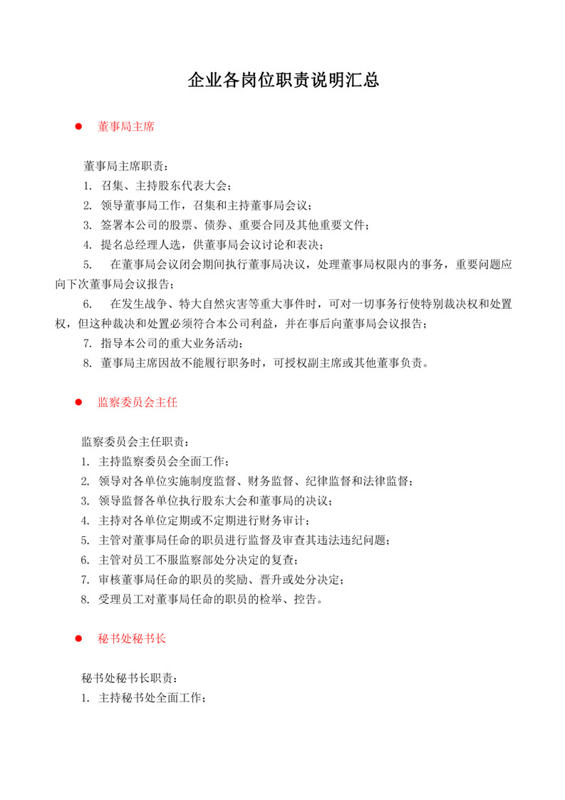 word模板-企业之各岗位职责说明书