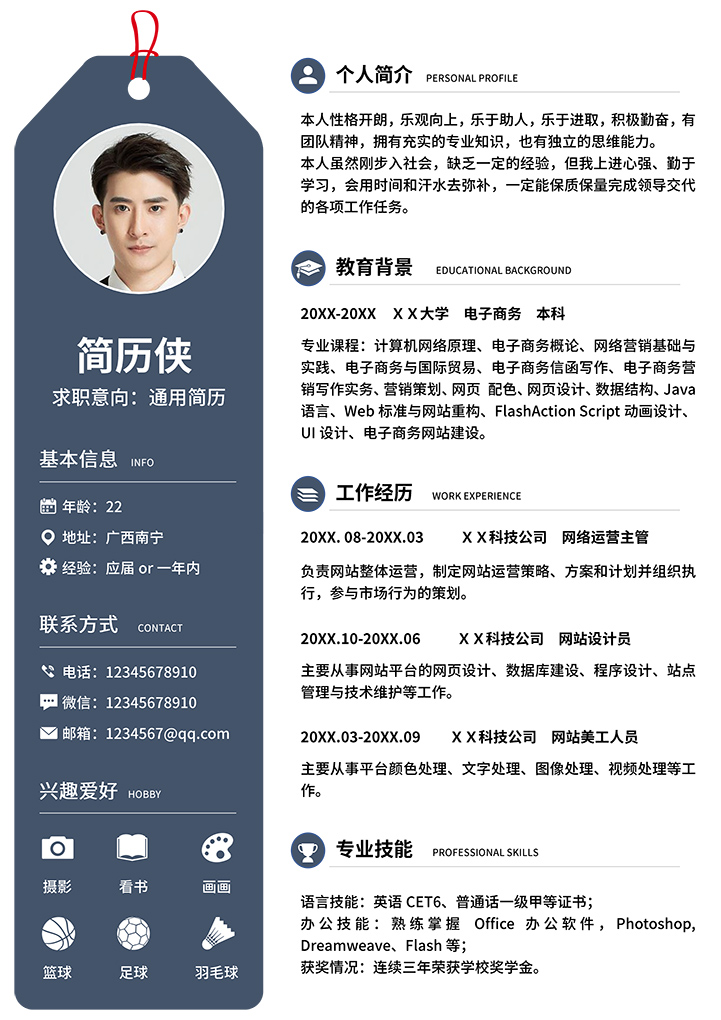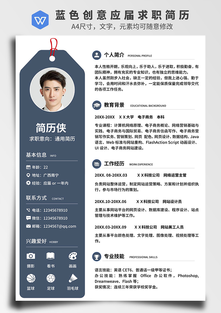 word模板-蓝色创意应届生求职简历