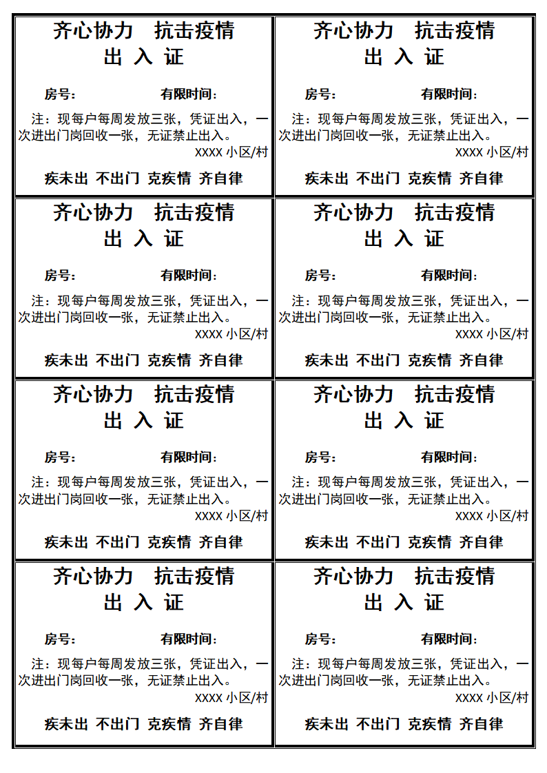 word模板-抗击疫情小区临时出入证