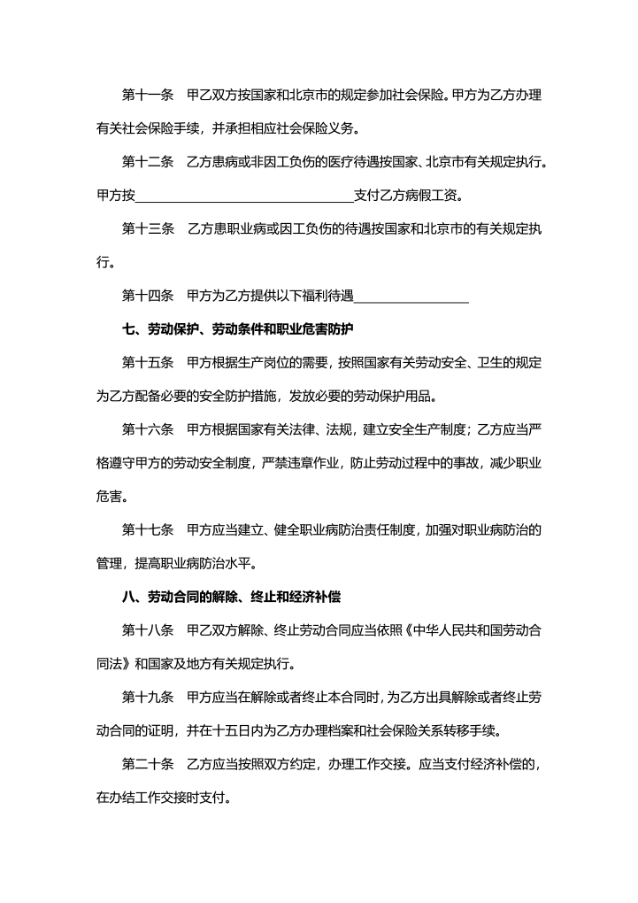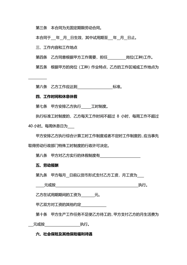 word模板-无固定期限劳动合同范本