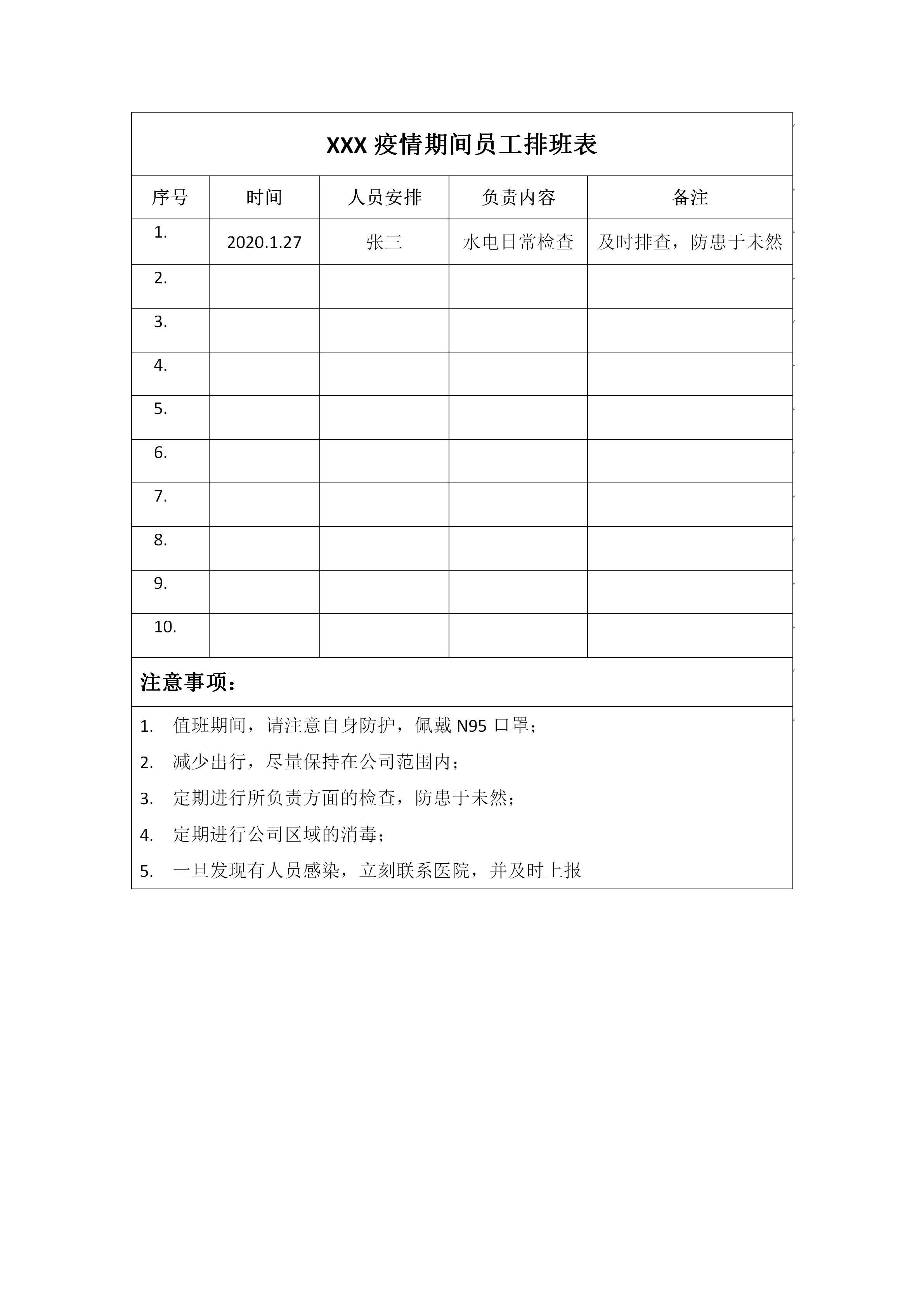 word模板-疫情期间员工排班表