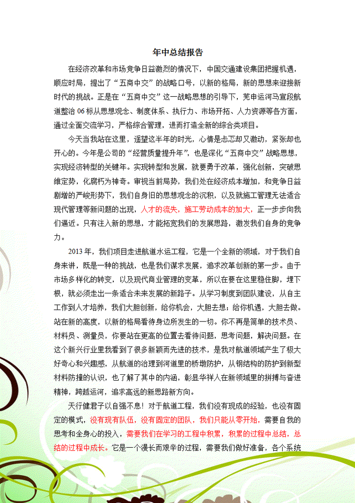 word模板-年中工作会报告