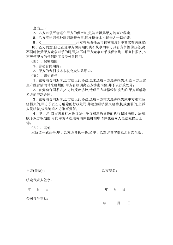 word模板-保密协议高级管理人员范文