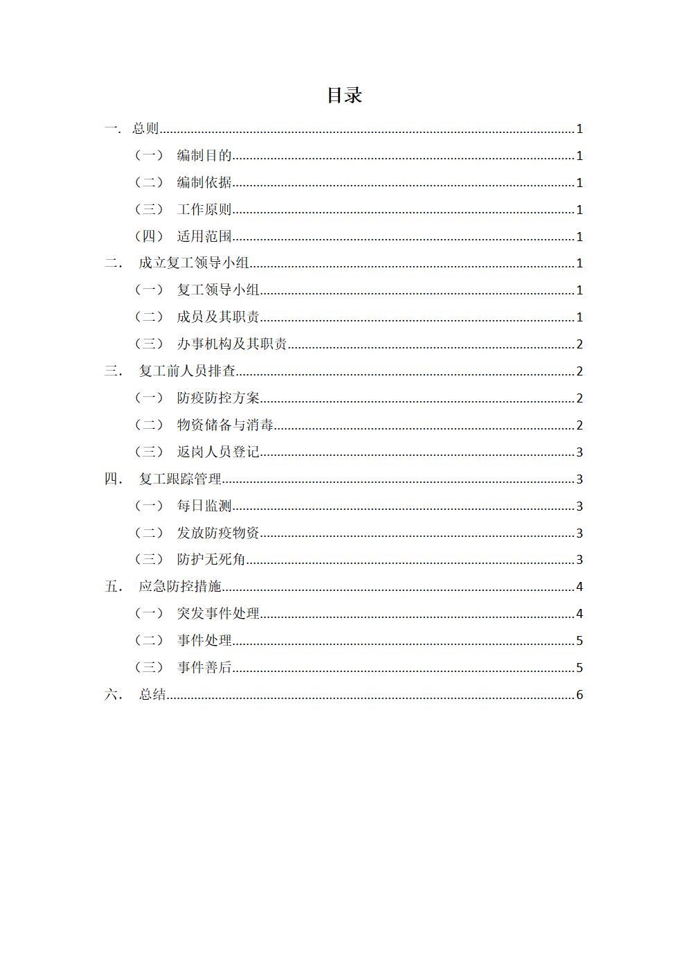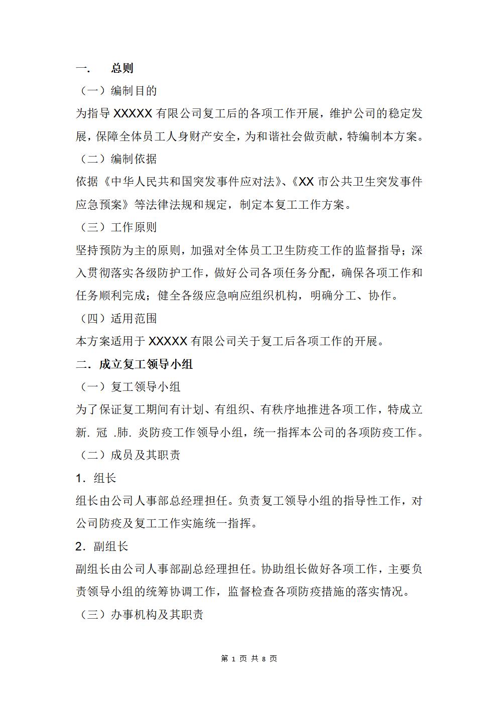 word模板-公司企业复工工作方案