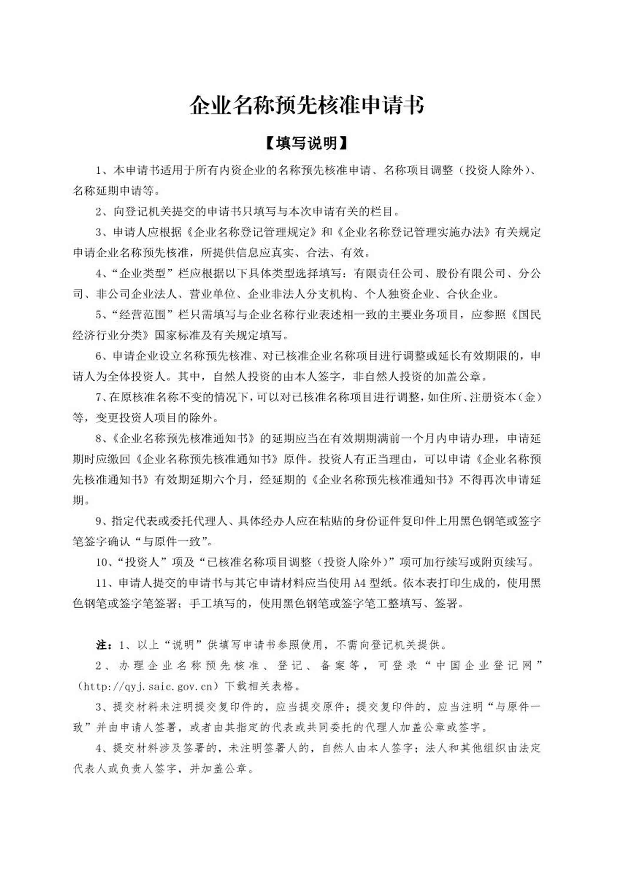 word模板-企业名称预先审核申请书