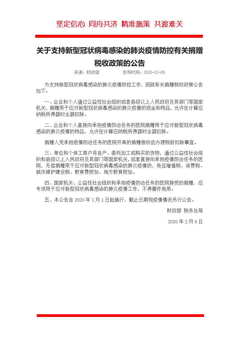 word模板-疫情防控有关捐赠税收政策的公告