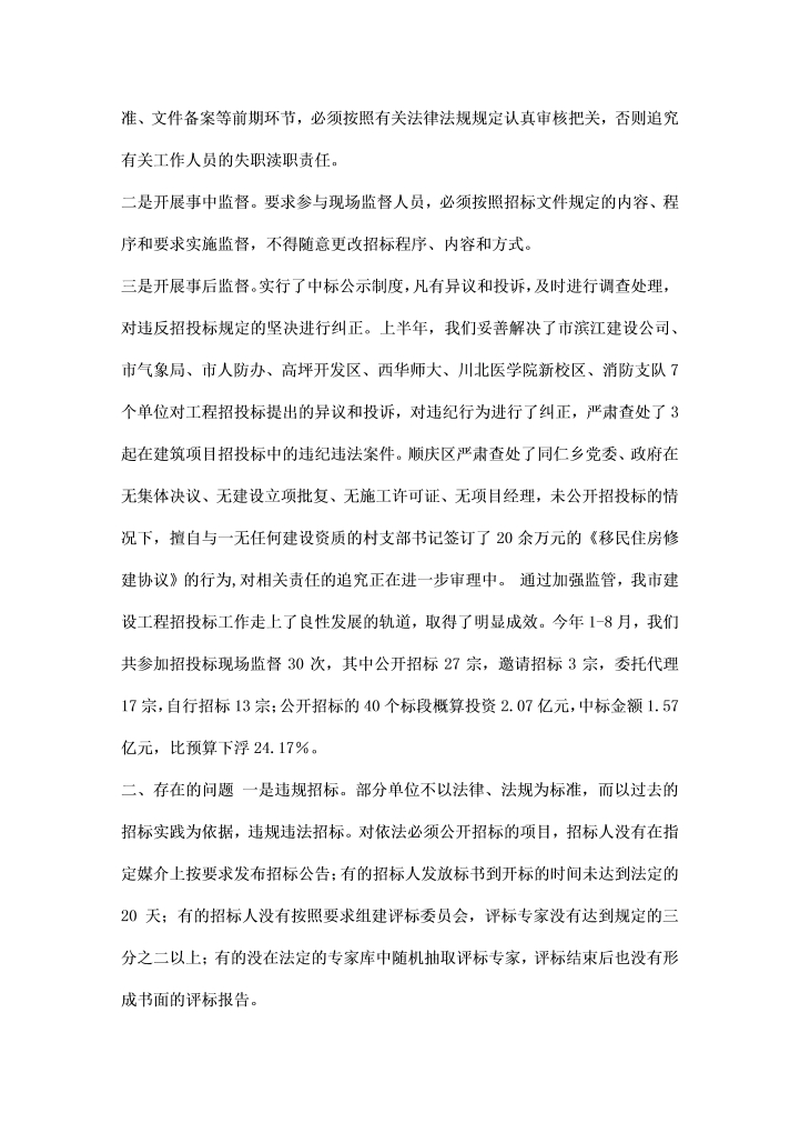 word模板-市招投标监督工作汇报