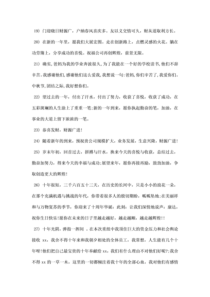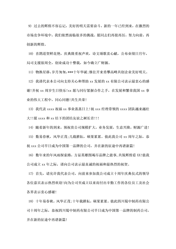 word模板-企业二十周庆祝福语