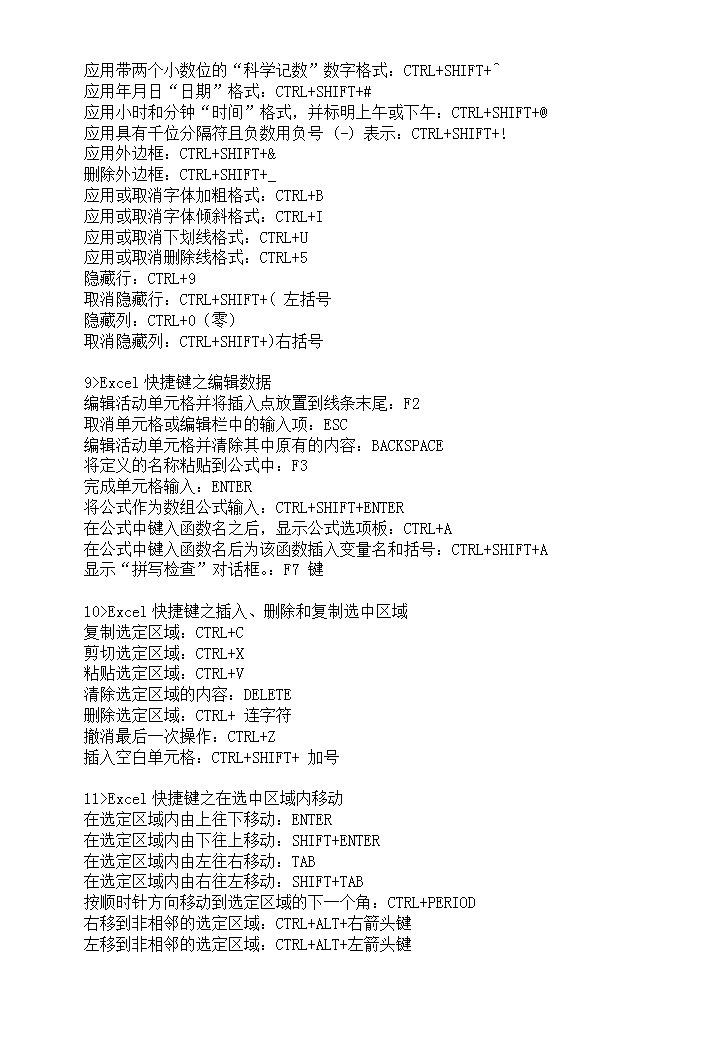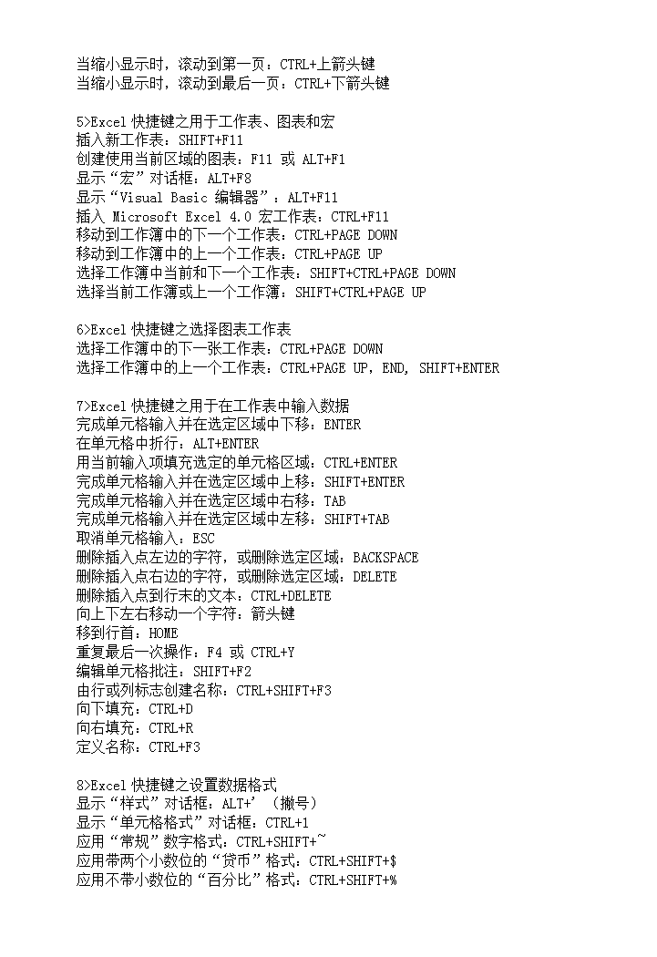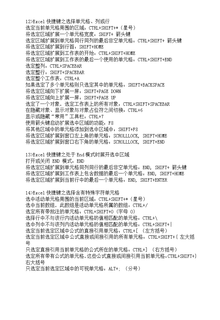 word模板-Excel快捷键大全