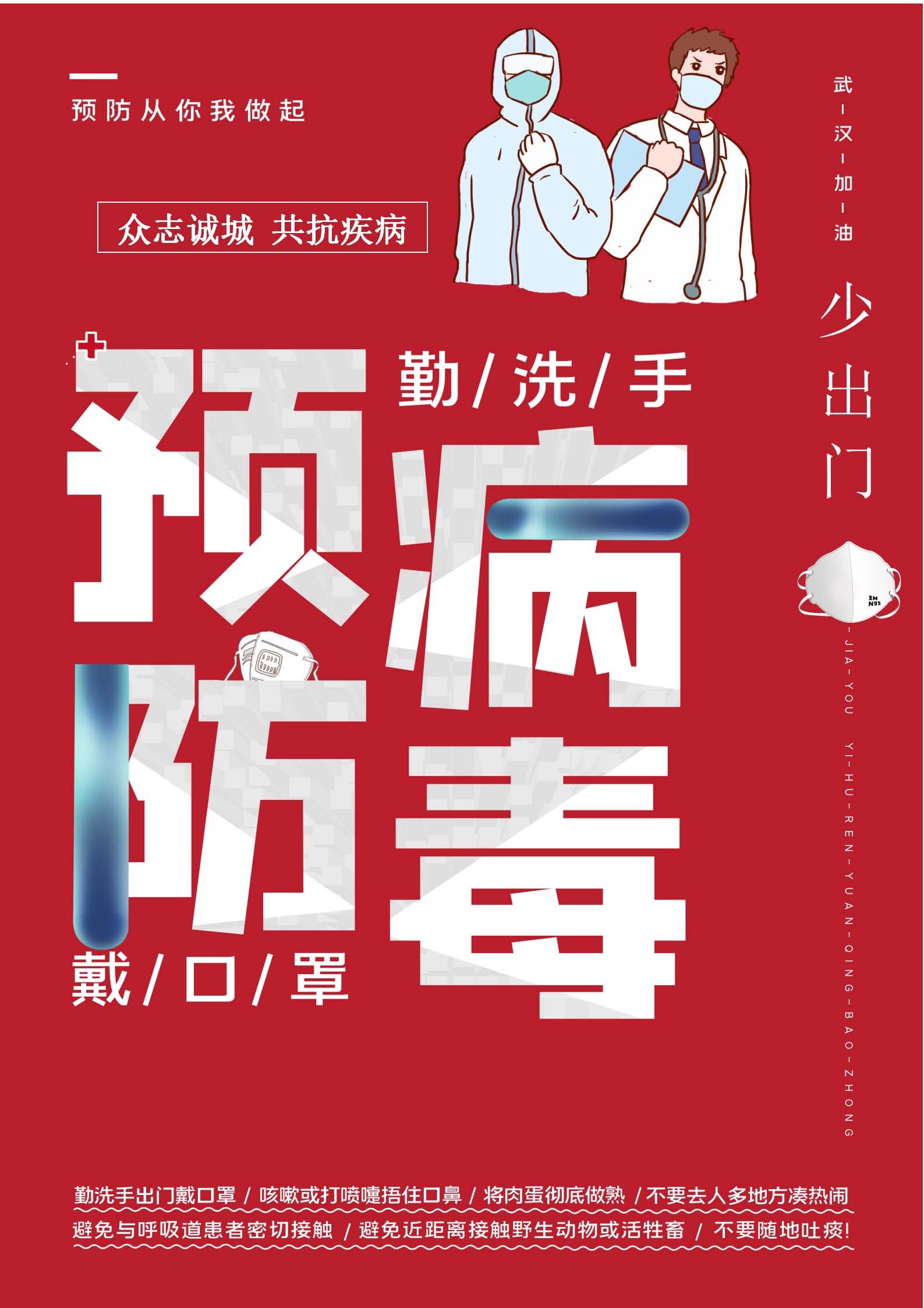 word模板-武汉加油疫情防护病毒红色海报