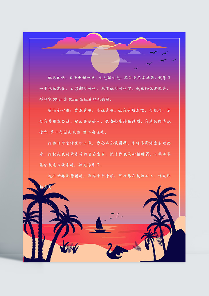 word模板-唯美夕阳海岸线信纸