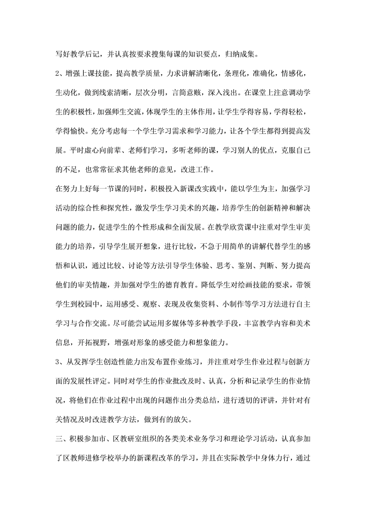 word模板-小学美术教师个人总结