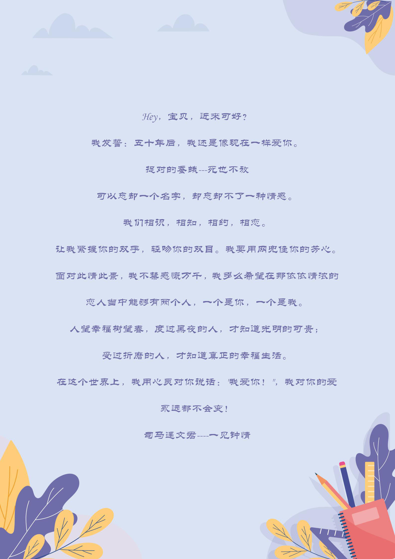 word模板-小清新紫色叶子信纸