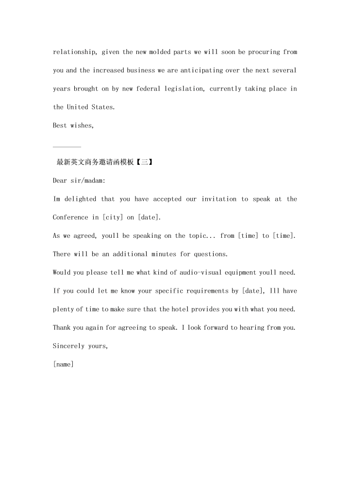 word模板-英文商务邀请函模板